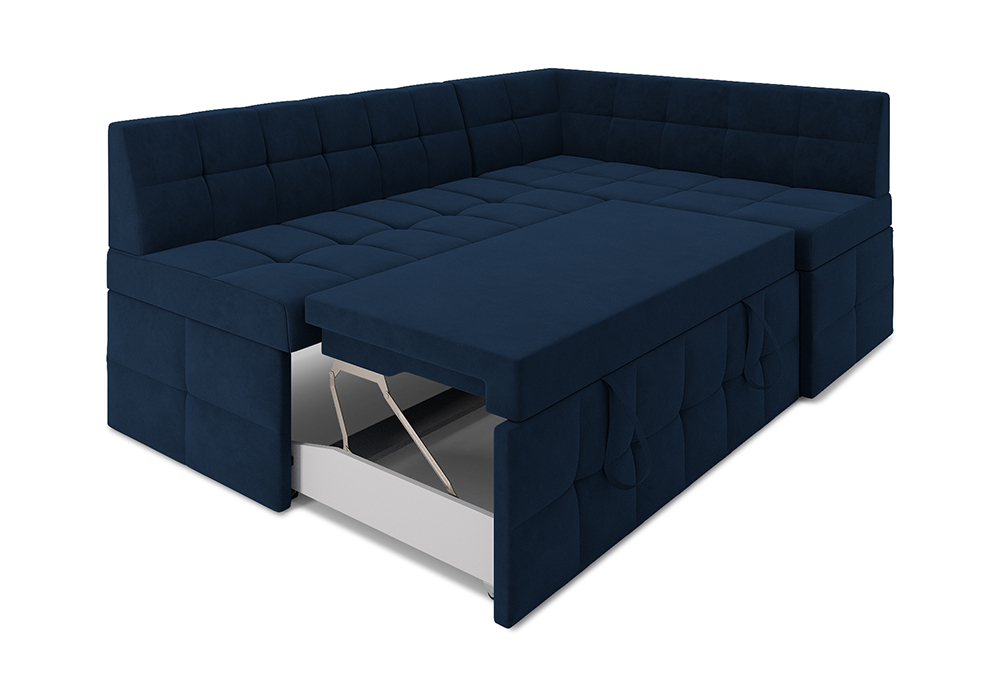 —Кухонный угловой диван дельфин Атлантис велюр темно-синий