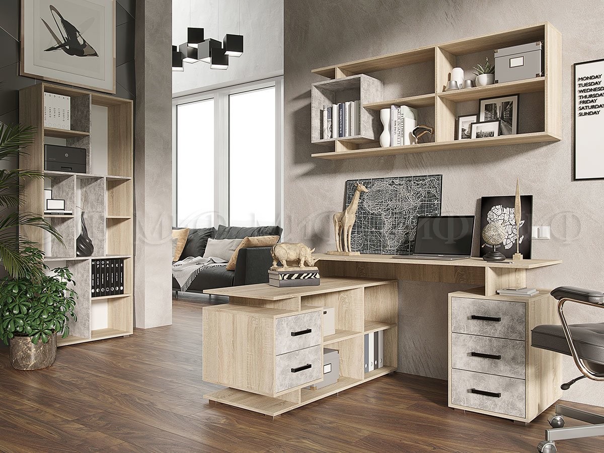 Компьютерный Стол Нидерланды №1 Дуб Сонома/Бетон /Ш-1500 x В-750 x Г-554 мм + Малый стол Ш-1200 x В-588 x Г-490 мм
